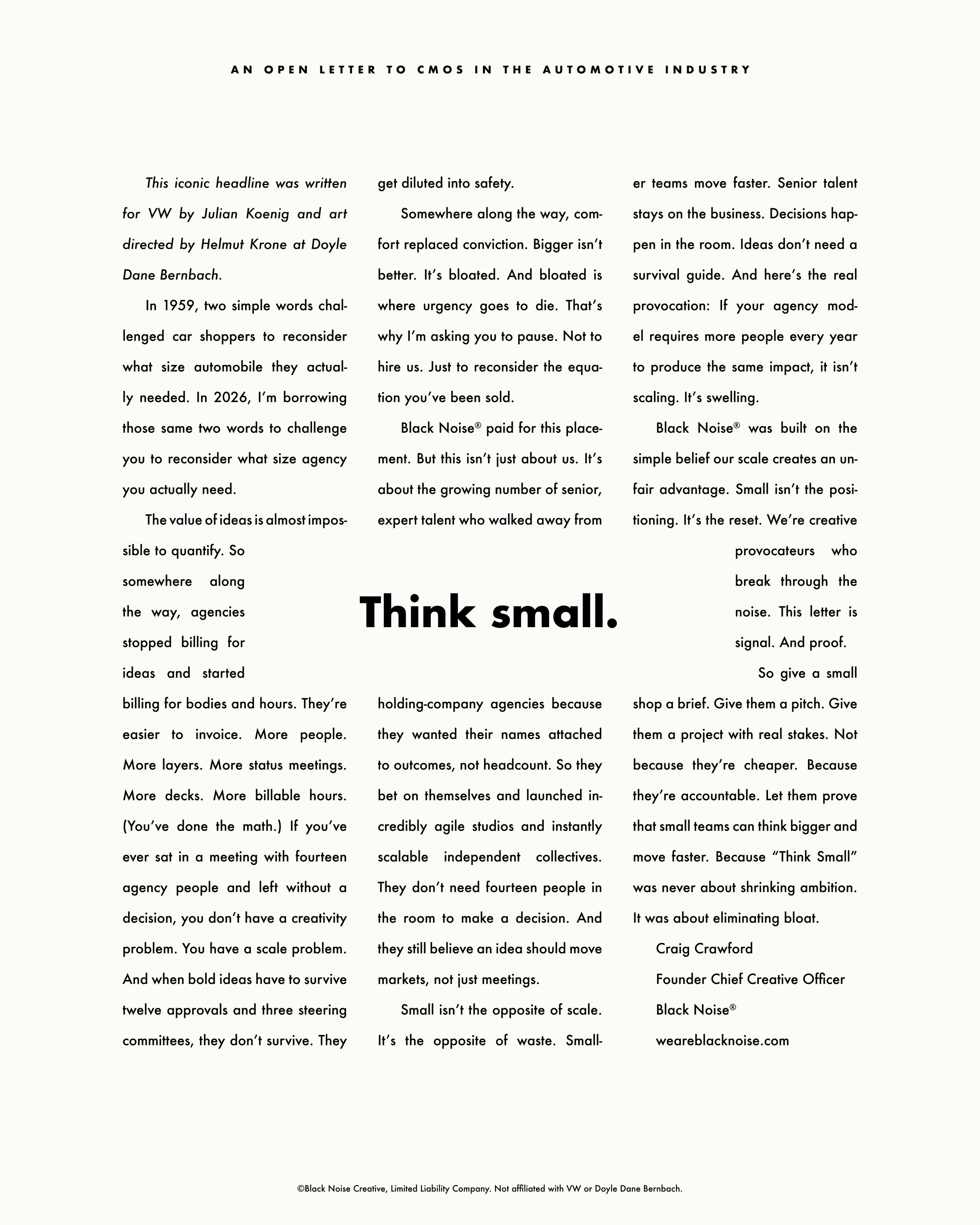 MORE ABOUT THE CMO OPEN LETTER PROJECT MORE ABOUT THE CMO OPEN LETTER PROJECT How does BLACK NOISE® think small? How does BLACK NOISE® think small?